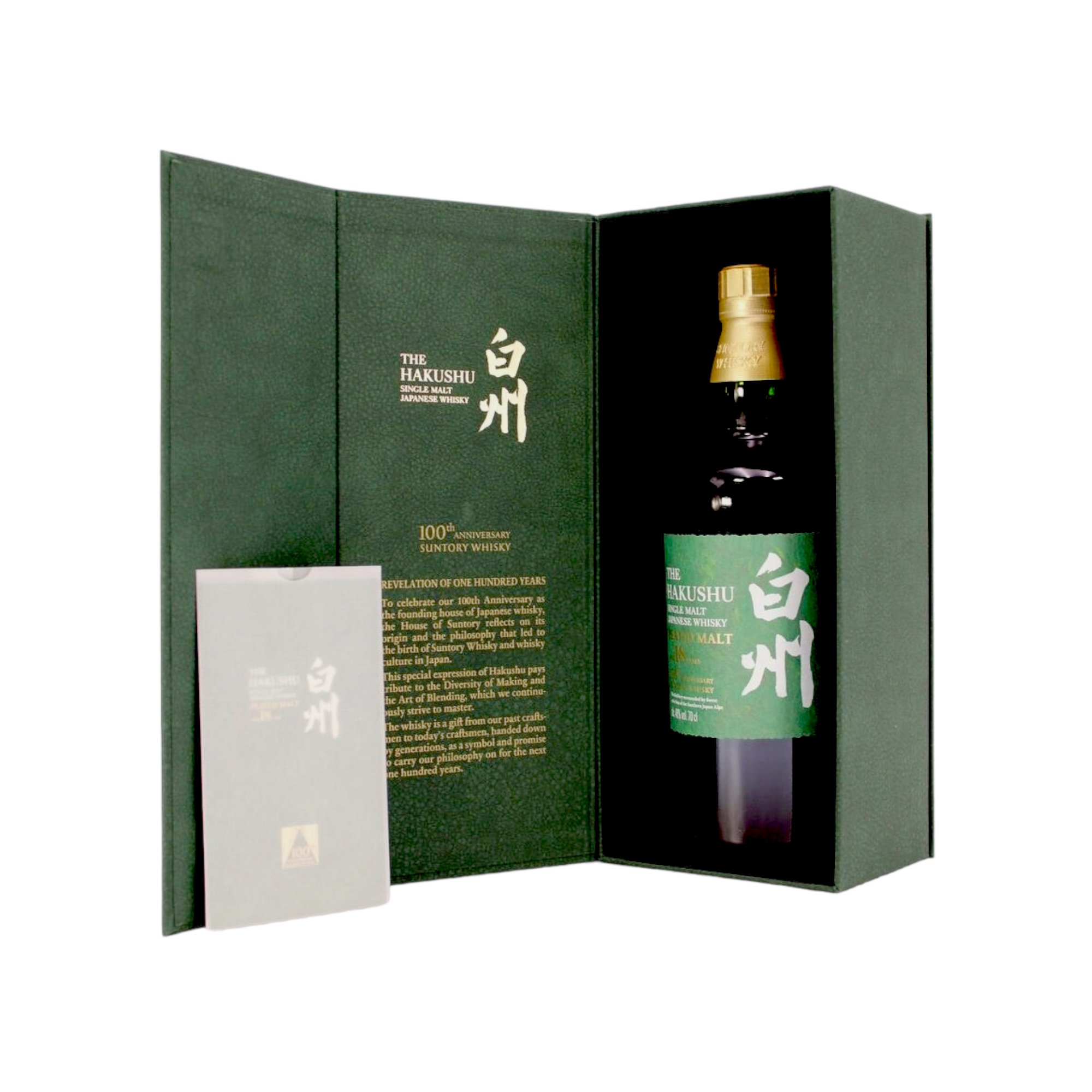 The Hakushu 18 Year Old 100th Anniversary Edition, a rare and refined Japanese single malt whisky, was meticulously crafted to commemorate the House of Suntory’s centenary in 2023. Distilled at the Hakushu Distillery, nestled within the serene forests of the Southern Japanese Alps, this commemorative release exemplifies the distillery’s characteristic freshness, elegance, and subtle peat influence.